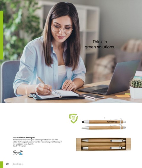 Bamboo and metal writing set consisting of a ballpoint pen with
