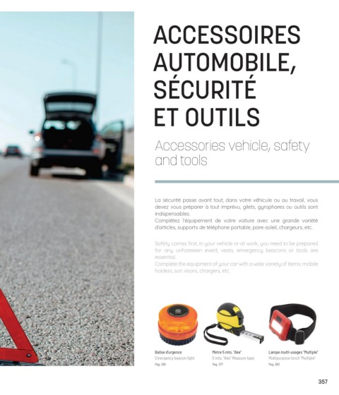 d’articles, supports de téléphone portable, pare-soleil, chargeurs, etc.